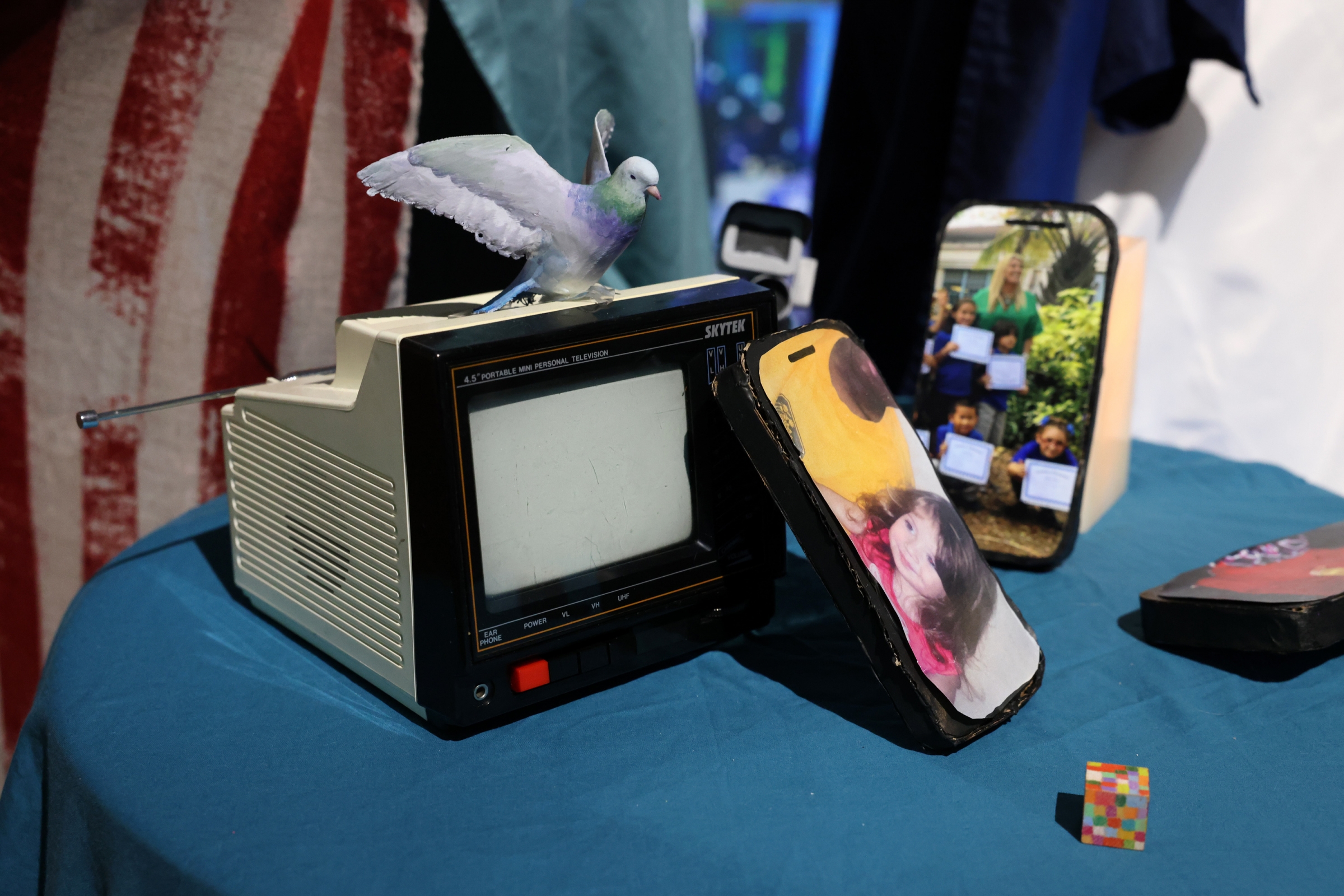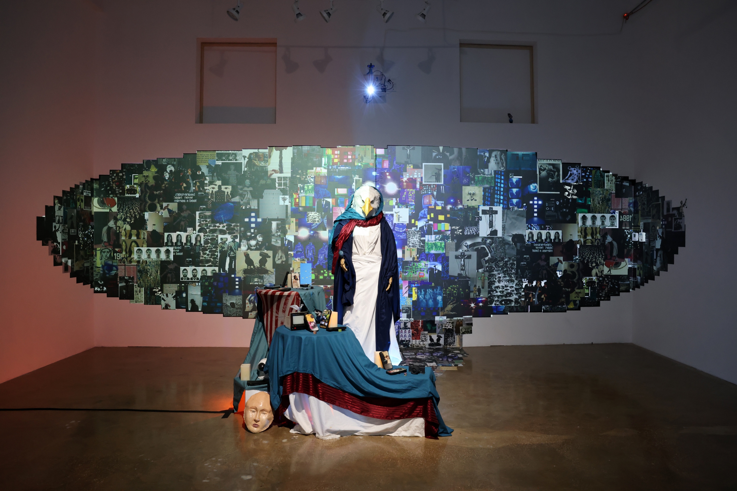 We asked ourselves: When does watching become controlling? Who gets to watch, and who is being watched? This installation comes from our own stories, our daily experiences, and the unsettling feeling of never truly being alone—even in our own thoughts. We used collage, sound, and sculpture to express how surveillance shapes our identities, our behaviors, and our sense of freedom.