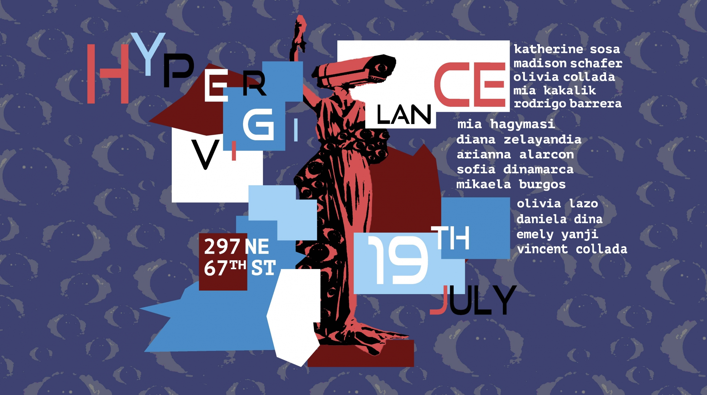 Hypervigilance is an exhibition we created to explore what it feels like to grow up in a world where we’re always being watched. From school hallways to social media, surveillance shows up in both obvious and subtle ways—through cameras, algorithms, judgment, and expectations. For us, Hypervigilance is about the constant pressure to be seen, to perform, and to conform.